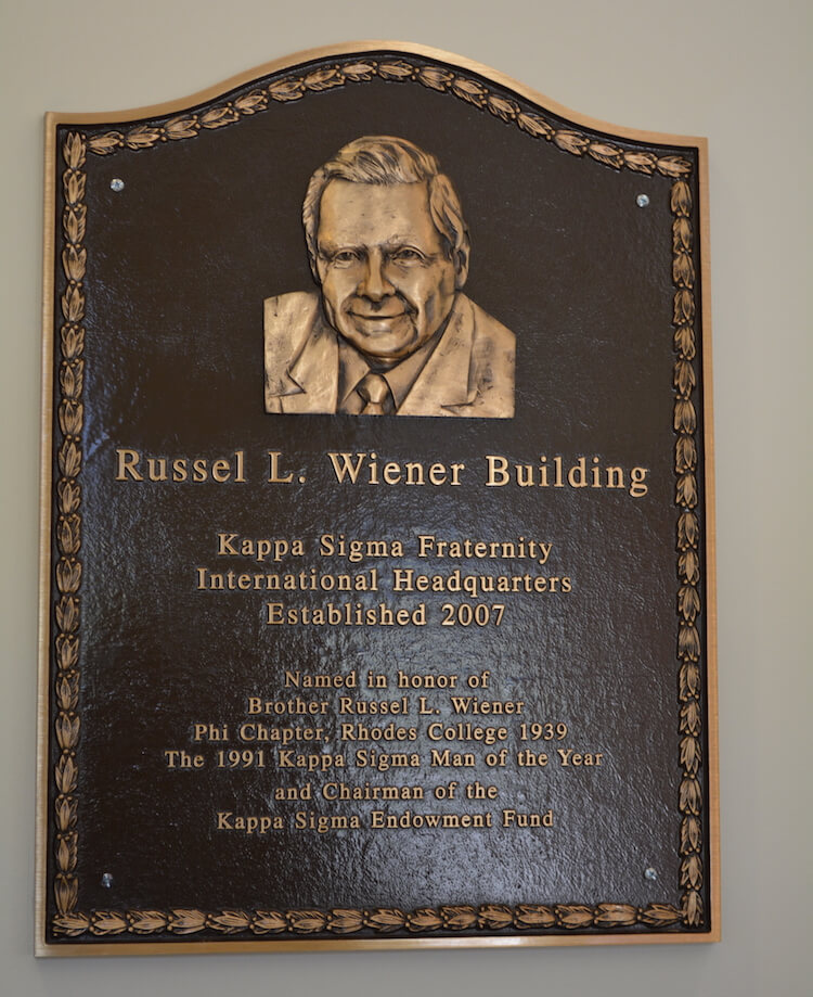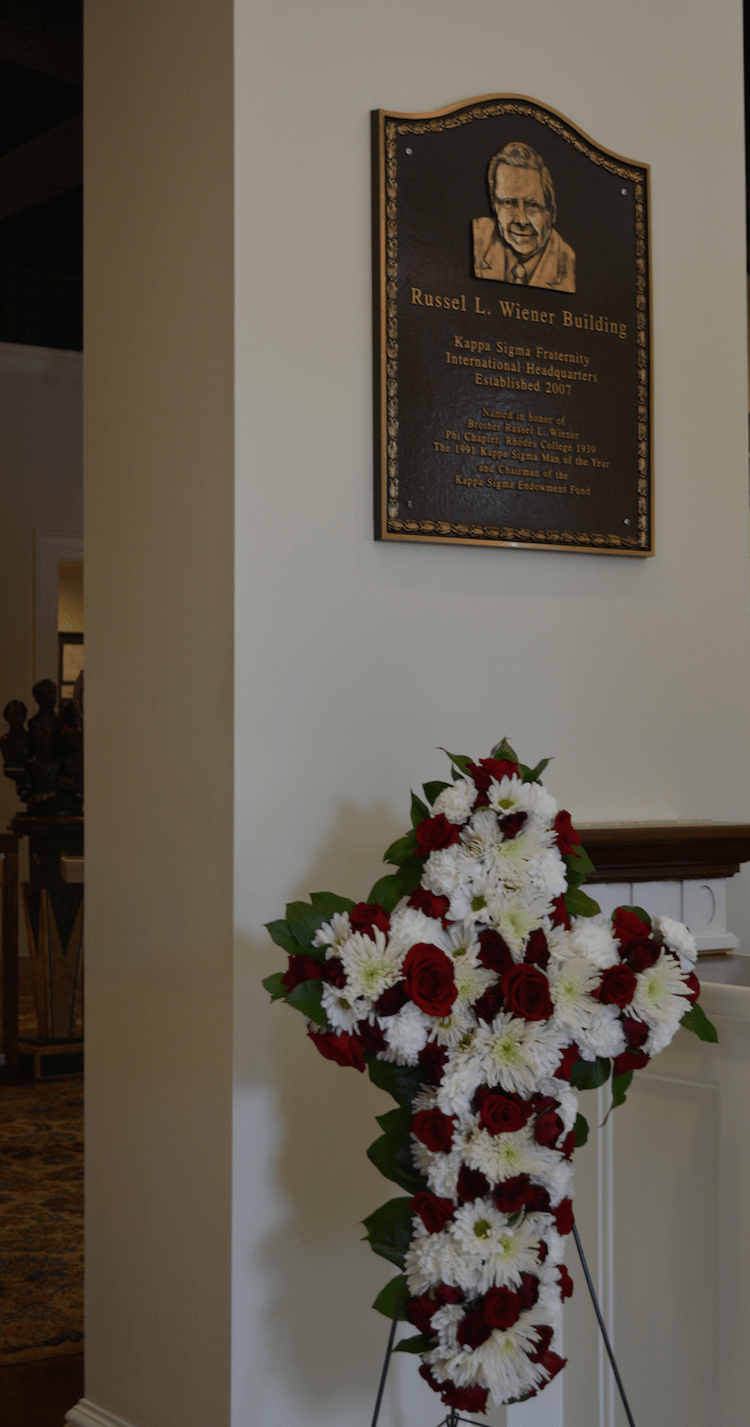 The Kappa Sigma Endowment fund was enriched by Brother Wiener’s tenure as chairman, where he gave of his time and treasure. Brother Wiener also ensured the Fraternity would have a state of the art Headquarters by providing a significant financial gift to its construction. The Kappa Sigma Fraternity International Headquarters was named in his honor at the ribbon cutting on June 2, 2007, and the Headquarters will always be known as the Russel L. Wiener Building.