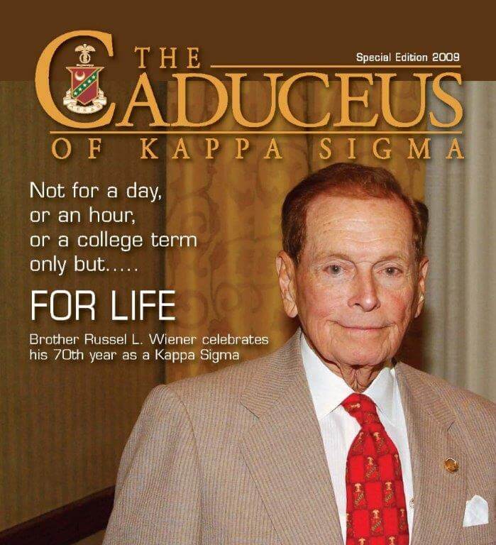 It is with great sadness that Kappa Sigma shares that Brother Russel L. Wiener joined the Chapter Celestial on April 1, 2015. Brother Wiener would have celebrated his 95th birthday on April 13.