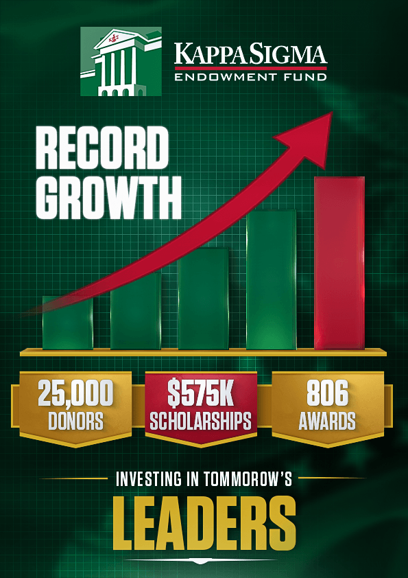 The Supreme Executive Committee and the Trustees of the Kappa Sigma Endowment Fund extend their sincere gratitude to the thousands of Brothers—both alumni and undergraduate—whose generosity is helping secure the future of Kappa Sigma and strengthen its legacy as A Brotherhood Like No Other.