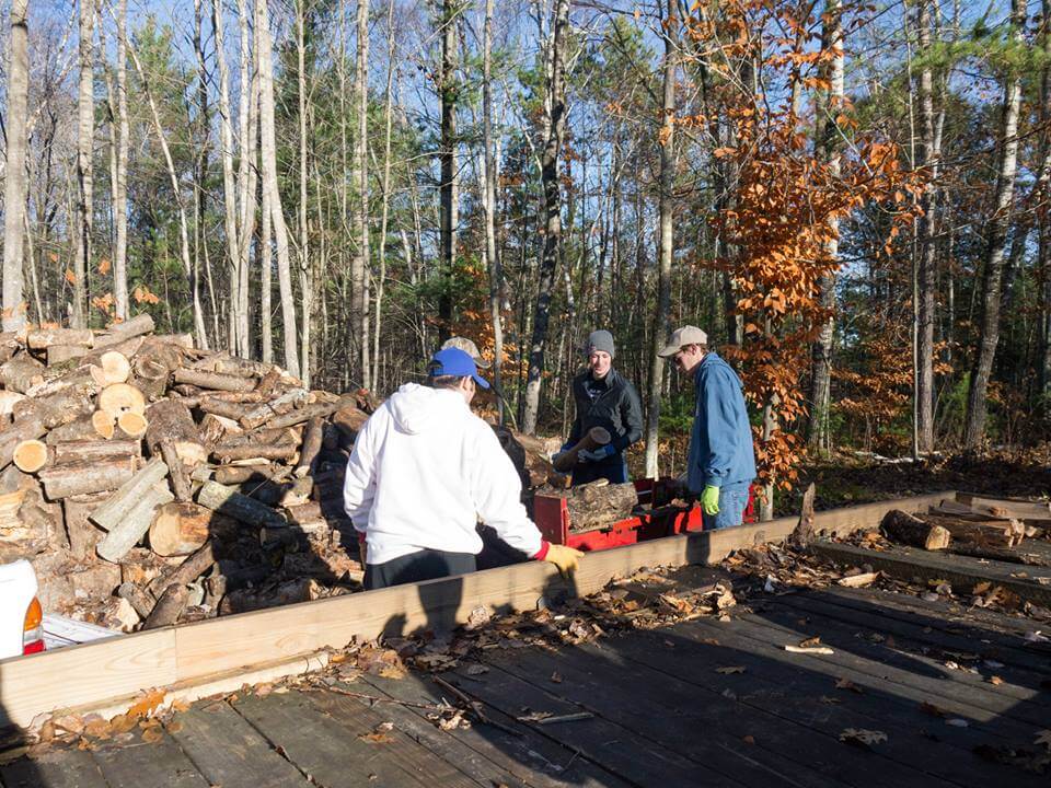 The Sigma-Iota Chapter (St. Norbert College) recently held a service retreat at Camp U-Nah-Li-Ya, a year ’round recreational and educational center owned and operated by the Greater Green Bay YMCA. The chapter had 17 undergraduate members along with five alumni attend the retreat. The camp only has one groundskeeper and relies on volunteer service to maintain much of the camp. Sigma-Iota spent the weekend completing various tasks around the grounds including; clearing cross-country skiing trails, leaf blowing the cabin roofs, splitting a large pile of wood, hauling wood to the cabins, trimming brush around the cabins and filling potholes on the camp road. Each member accumulated 12 hours of service!